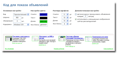 Хм, господинZorkabiz, я искренне надеюсь. что вы еще загляните в эту ветку. Можно ли настроить 2 вывода блоков рекламы? я связывался с поддержкой, мне сказали что это возможно, и даже дали код, но согласно блоки будут строго вертикальными - т.е. фактически это 1 вертикальный блок, просто часть там а часть там будет выводиться. меня интересует возможно создать 2 блока: 1 горизонтальный и 1 вертикальный --------------------